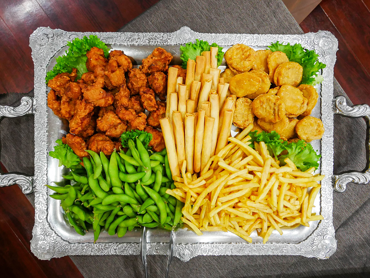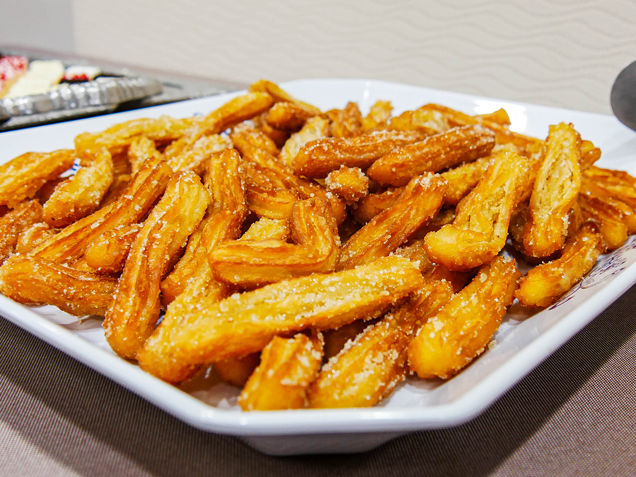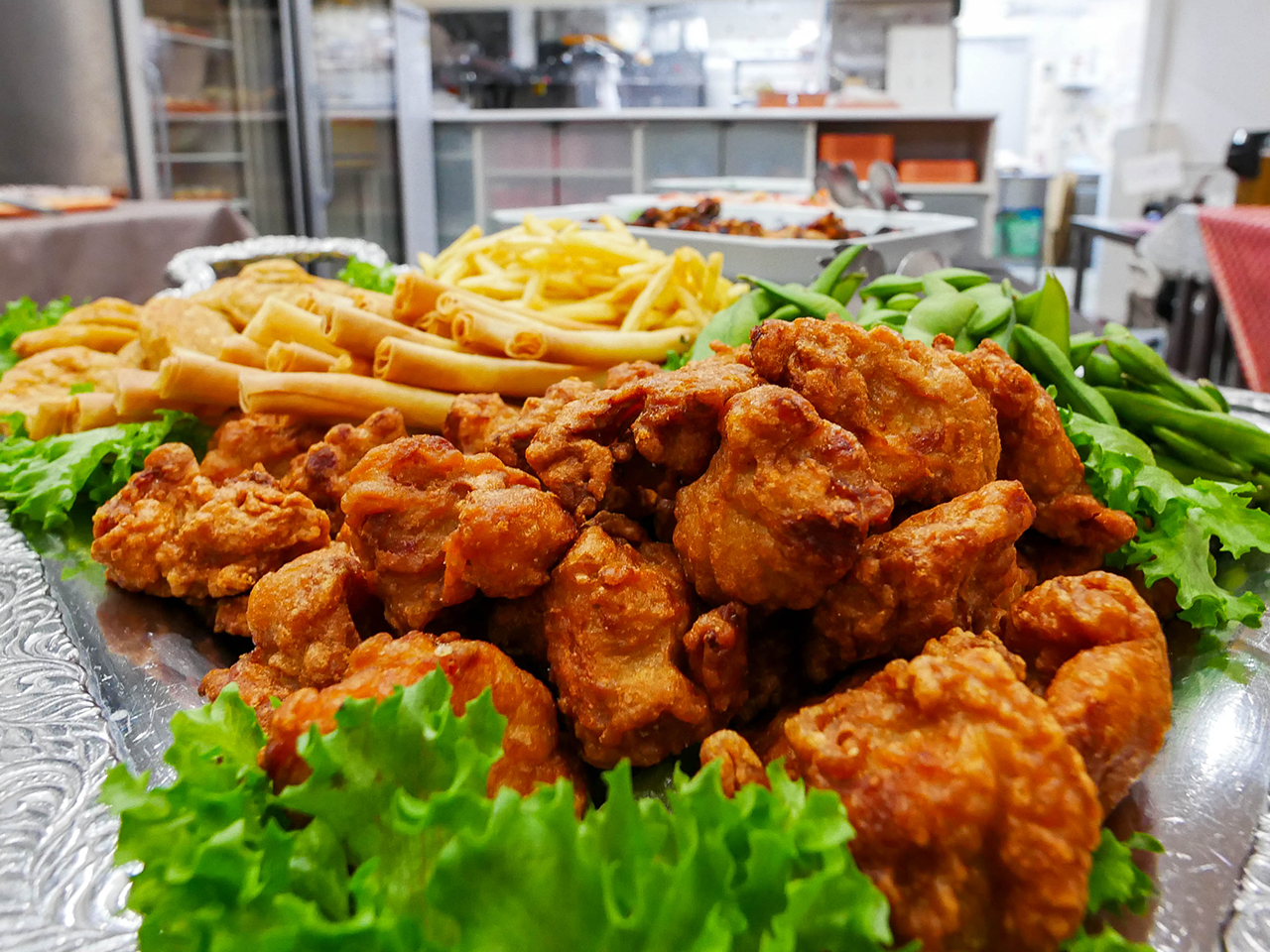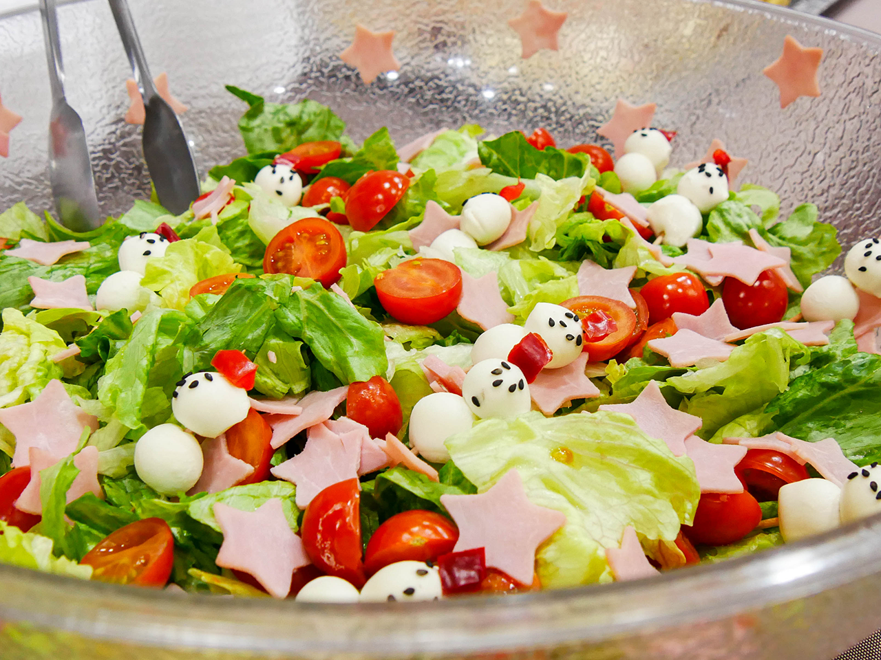 サクサクのチュロスやジューシーなチキン、ポテトやナゲットに加えて、サラダには雪だるまのチーズがちょこんと登場⛄