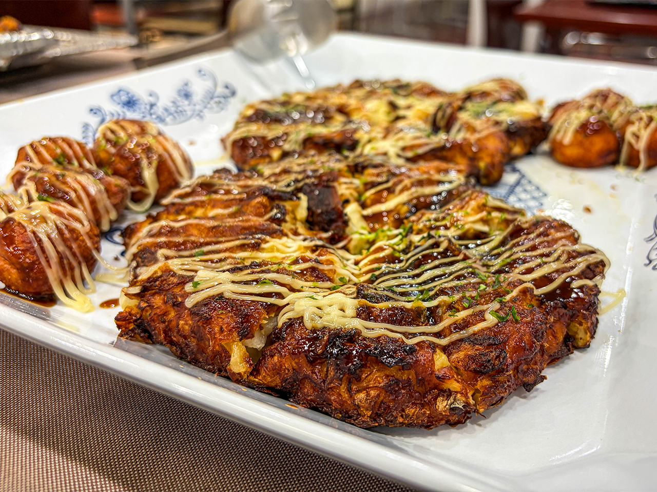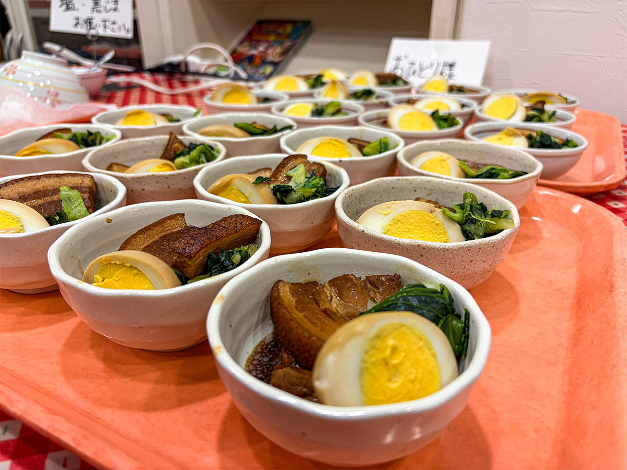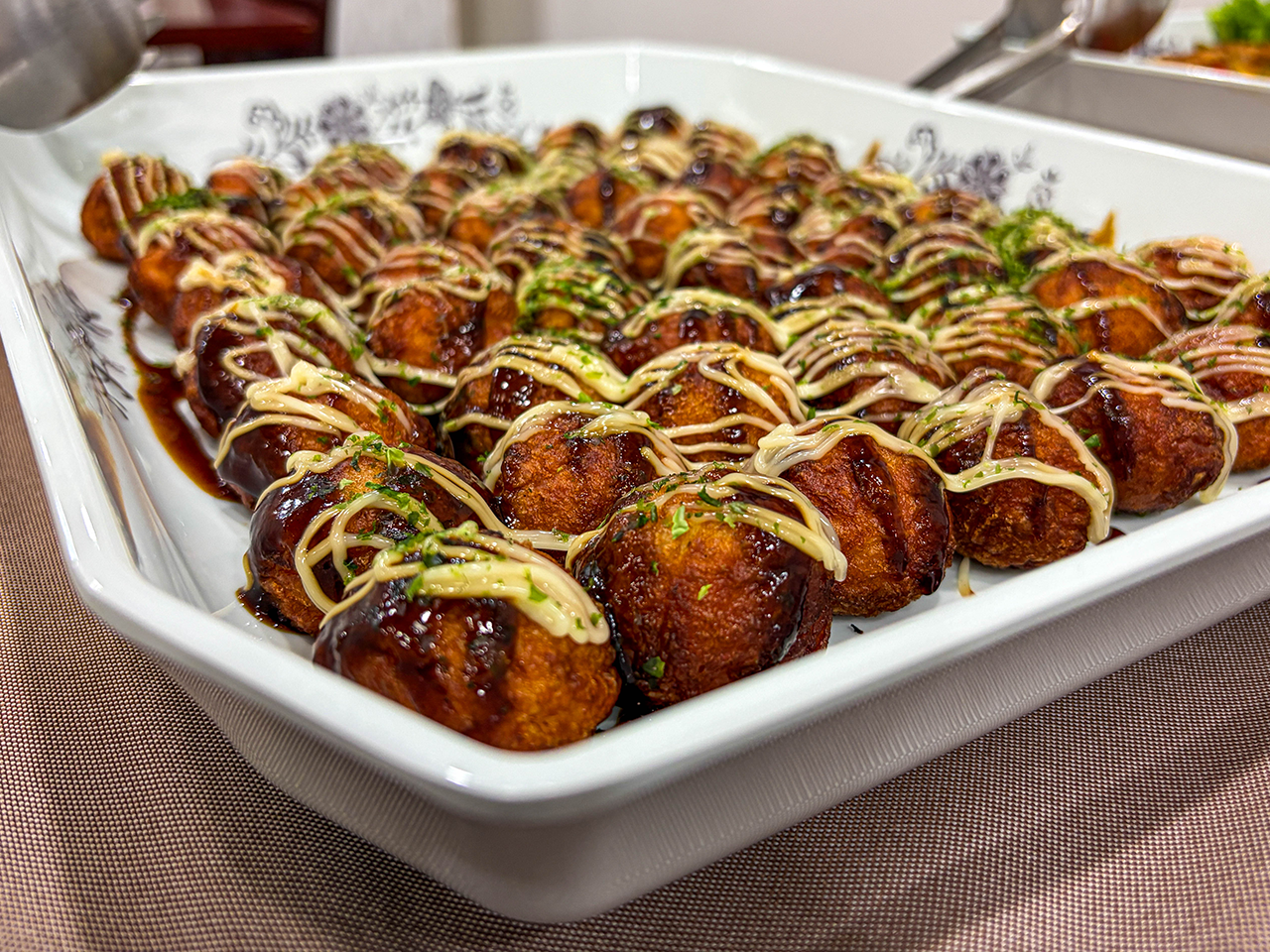 とろとろな豚の角煮に、たこやきやお好み焼き、チョコケーキやショートケーキなどのミニケーキまで盛りだくさんです😊