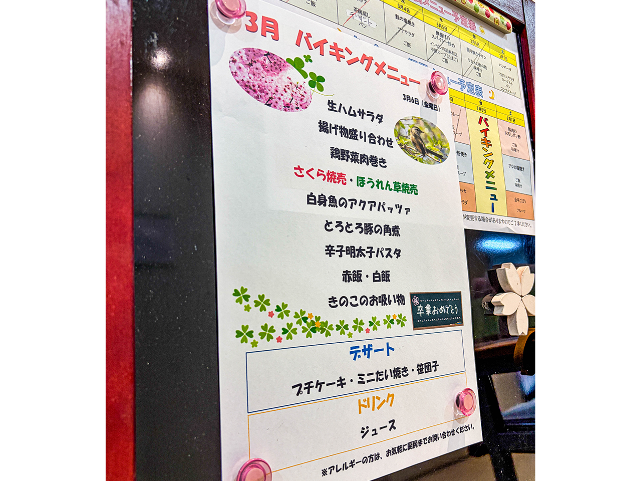 さくら焼売やほうれん草焼売など、春らしい特別なメニューも!「卒業おめでとう」の気持ちがぎゅっと詰まったバイキングでした🎵